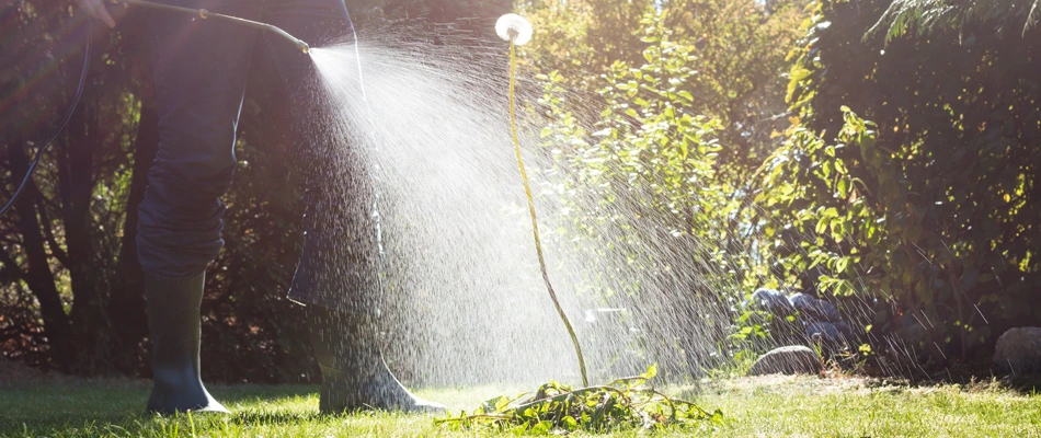 Liquid weed control is a fast and efficient way to keep weeds off your property. It can either be sprayed across the entire lawn or it can be used as a spot treatment depending on the needs of the lawn. Similarly, liquid weed control can either be used as a pre-emergent or a post-emergent weed control treatment. Liquid pre-emergent weed control treatments are typically sprayed across the entire lawn to create a barrier on the soil that will prevent weeds from sprouting. When used as a post-emergent weed control treatment, liquid weed control is used as a spot treatment on individual weeds to rid your lawn of these pesky plants.